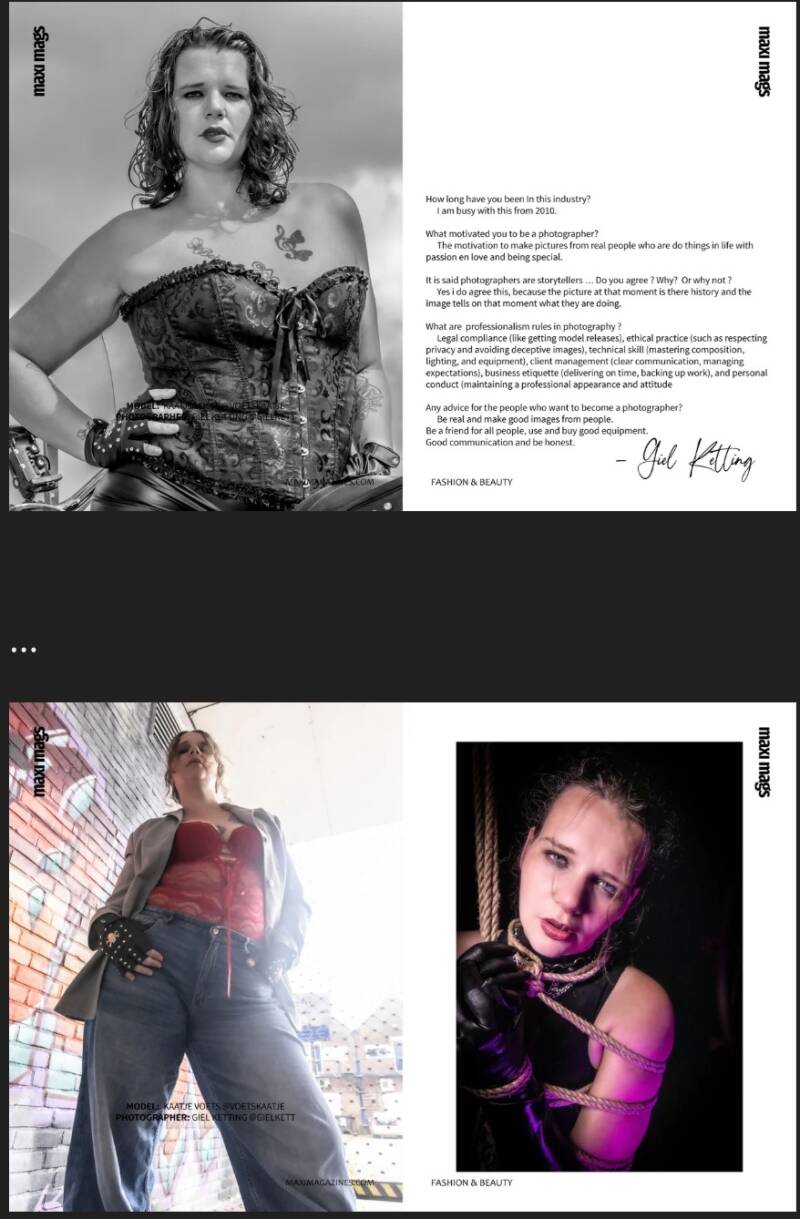 "MAXI MAGAZINES" uitgekomen waarin er 3 foto's zijn gepubliceerd, in de prachtige samenwerking tussen mij & Giel Ketting (fotograaf).
